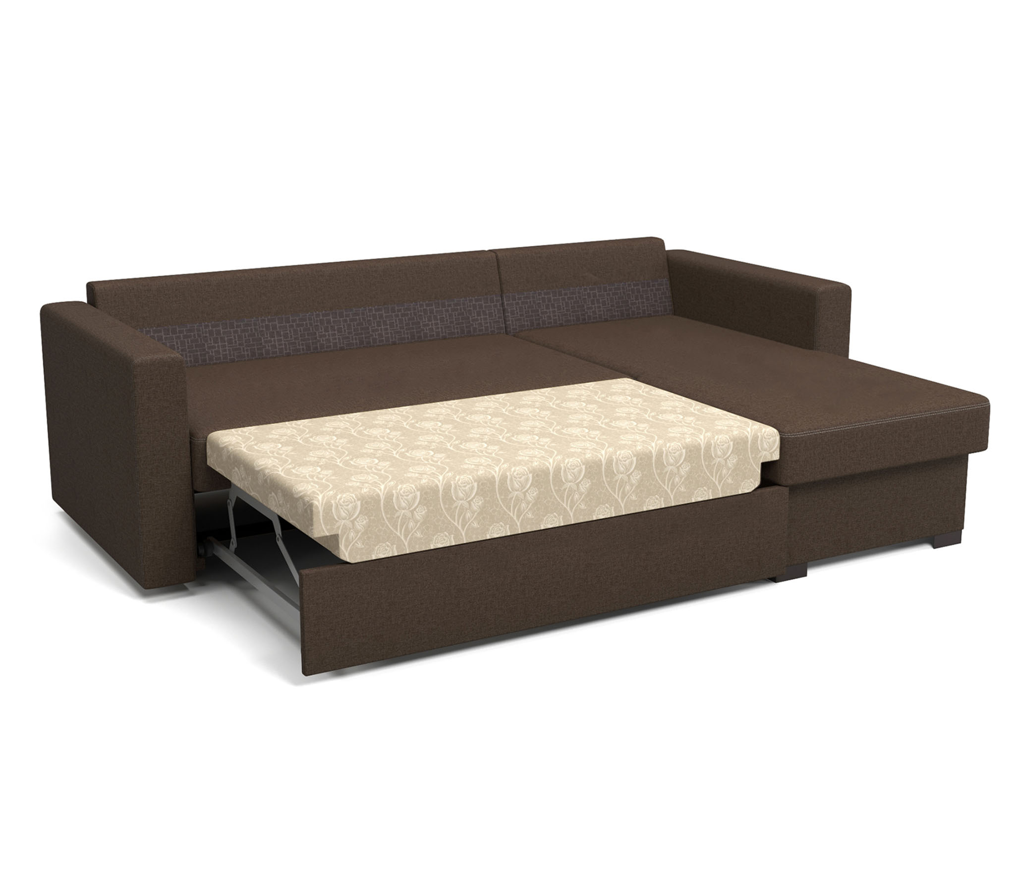Каркас дивана «Джессика» выполнен из бруса и высокопрочной ЛДСП – ламинированной древесно-стружечной плиты, надежно удерживающей крепежные элементы.Мягкие части модели созданы на основе современного материала ППУ (пенополиуритана), полученного из синтетических полимеров и обработанного антигрибковым и антибактериальным составами. Материал долговечен, экологически безопасен, быстро восстанавливается после смятия, не плесневеет, не впитывает и не выделяет пыль. Обивка из рогожки приятна на ощупь, устойчива к разрывам и истиранию, не мнется, не растягивается и легко чистится.Простоту эксплуатации этого дивана обеспечивает выкатной механизм «Дельфин», позволяющий двумя движениями создать ровное и упругое спальное место размером 1400 х 1900 мм – достаточно выкатить вперед основание, а в освободившуюся нишу опустить спинку. Поэтому можно купить угловой диван «Джесика» для ежедневного пользования, а лаконичный дизайн и нейтральная цветовая гамма снимают ограничения при выборе дополнительных элементов интерьера – журнального столика, кресел, стеллажей и элементов декора.