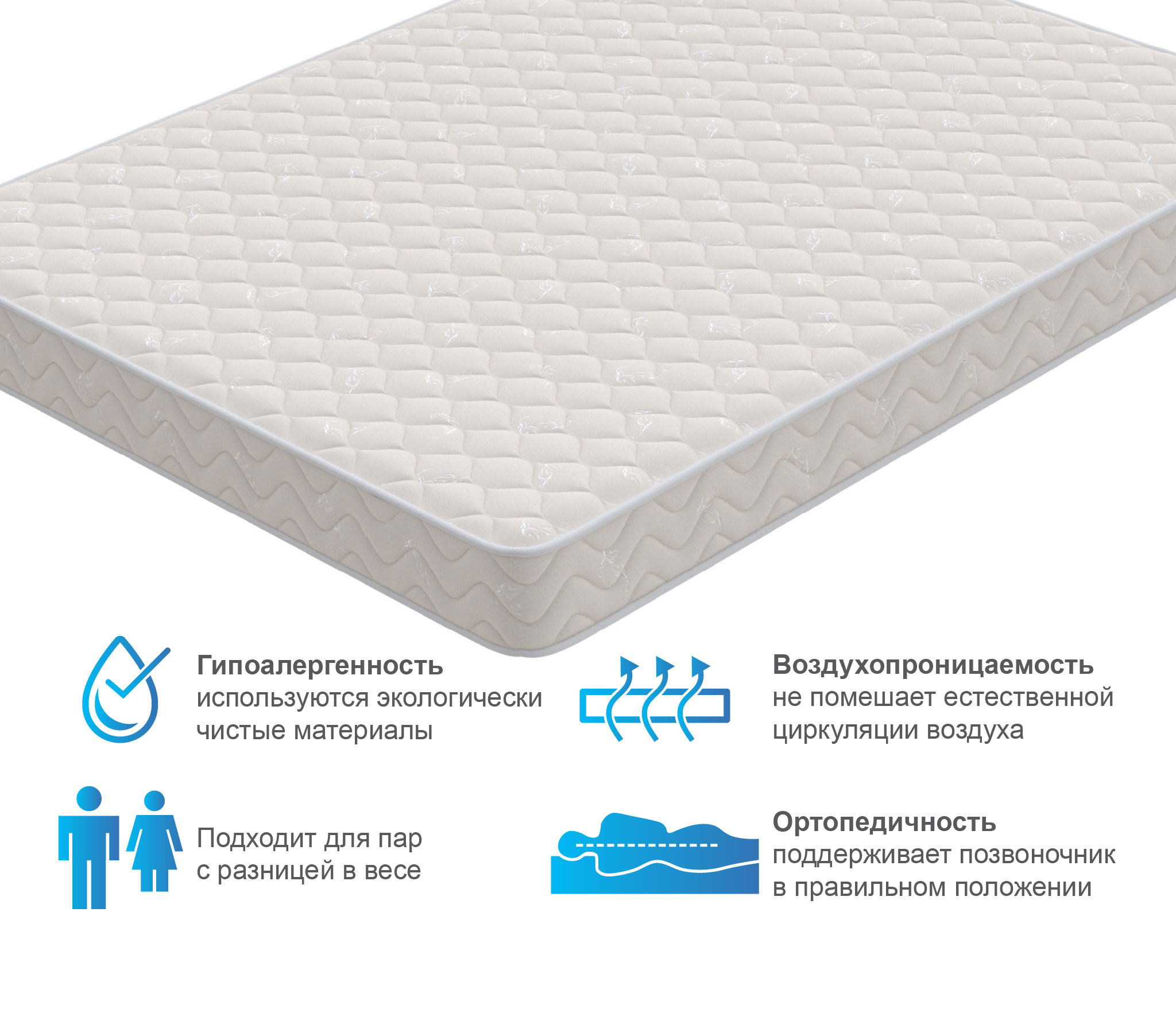 Базовая модель для комфортного отдыха. Сочетание комфортных слоев из мягкого ортофом, жесткого кокоса с би-компонентами с независимым пружинным блоком наделяют матрас универсальной средней жесткостью. Отлично подойдет для обустройства спального места на даче, в съемной квартире или в качестве временного решения. Матрас не требует переворачивания.